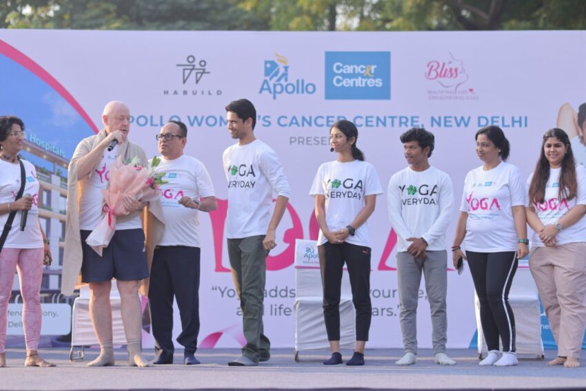 The session was inaugurated by H. E. Freddy Svane, Honorable Ambassador of Denmark to India, who served as the event’s Chief Guest. He said, “In Denmark, we recognize the importance of holistic health in cancer care, where yoga plays a significant role in enhancing both physical and mental well-being. I am delighted to witness the breast cancer awareness initiative organized by Apollo Athenia for women’s health. It is inspiring to see their collaboration with Mr. Sourabh Bothra in creating supportive spaces for those impacted by breast cancer. This gathering underscore our shared commitment to advancing integrative approaches in healthcare, fostering communities of healing and hope.”