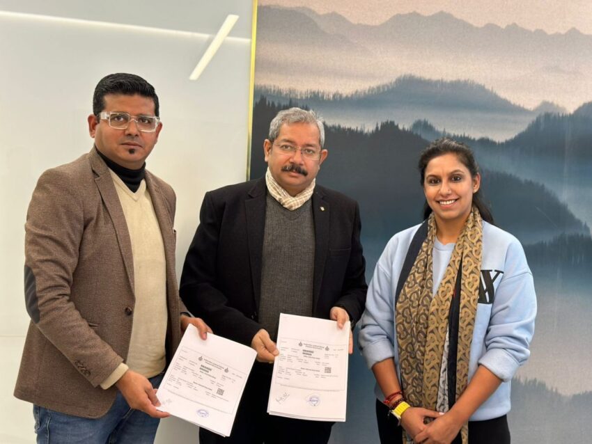 The MOU was signed between Mr. Amitesh Shah and Dr. Kanika Dewan representing the Shikhar Dhawan Foundation and Dr. Aishwarya Mahajan, President M3M Foundation.